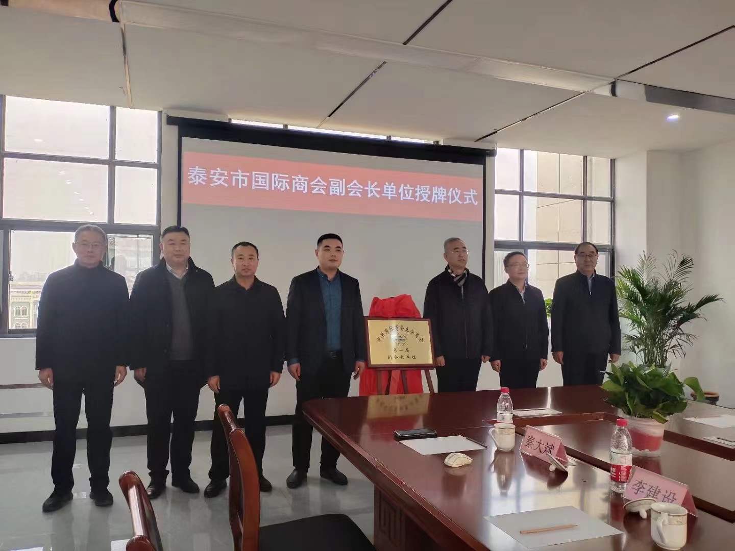 2022年1月6日下午,泰安市貿(mào)促會黨組書記、會長陳勇,市貿(mào)促會黨組成員、副會長張桂明,泰安市國際商會秘書長趙傳兵,泰安市會展副總經(jīng)理胡闊偉,泰山區(qū)委副書記、區(qū)政府代區(qū)長周鵬飛,區(qū)委常委、區(qū)政府黨組副書記朱光勝,區(qū)政府黨組成員、區(qū)政府辦公室主任孫一國,區(qū)政府黨組成員、區(qū)政府辦公室副主任孫大偉,區(qū)貿(mào)促會黨組書記李建設(shè),區(qū)貿(mào)促會會長湯琳琳,省莊鎮(zhèn)黨委書記謝慧清,省莊鎮(zhèn)鎮(zhèn)長季秀華等相關(guān)領(lǐng)導(dǎo)蒞臨泰安德美新廠區(qū)舉行隆重的授牌儀式,為泰安德美機電設(shè)備有限公司董事長秦大斌先生授牌,泰安德美機電設(shè)備有限公司榮升為泰安市國際商會副會長單位!