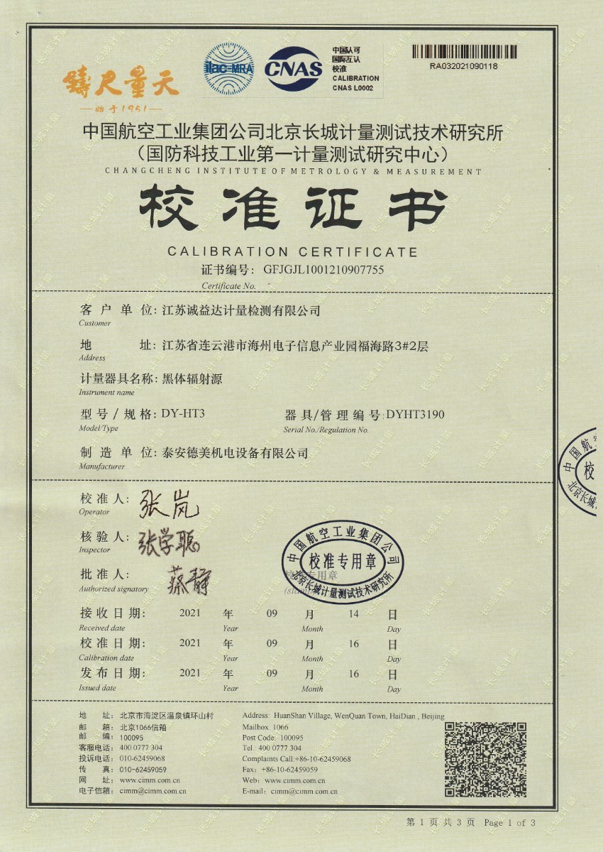 | 上一條:中國科學(xué)院微電子研究所-面源黑體輻射源 | 下一條:冷鏡式露點(diǎn)儀校準(zhǔn)證書 |