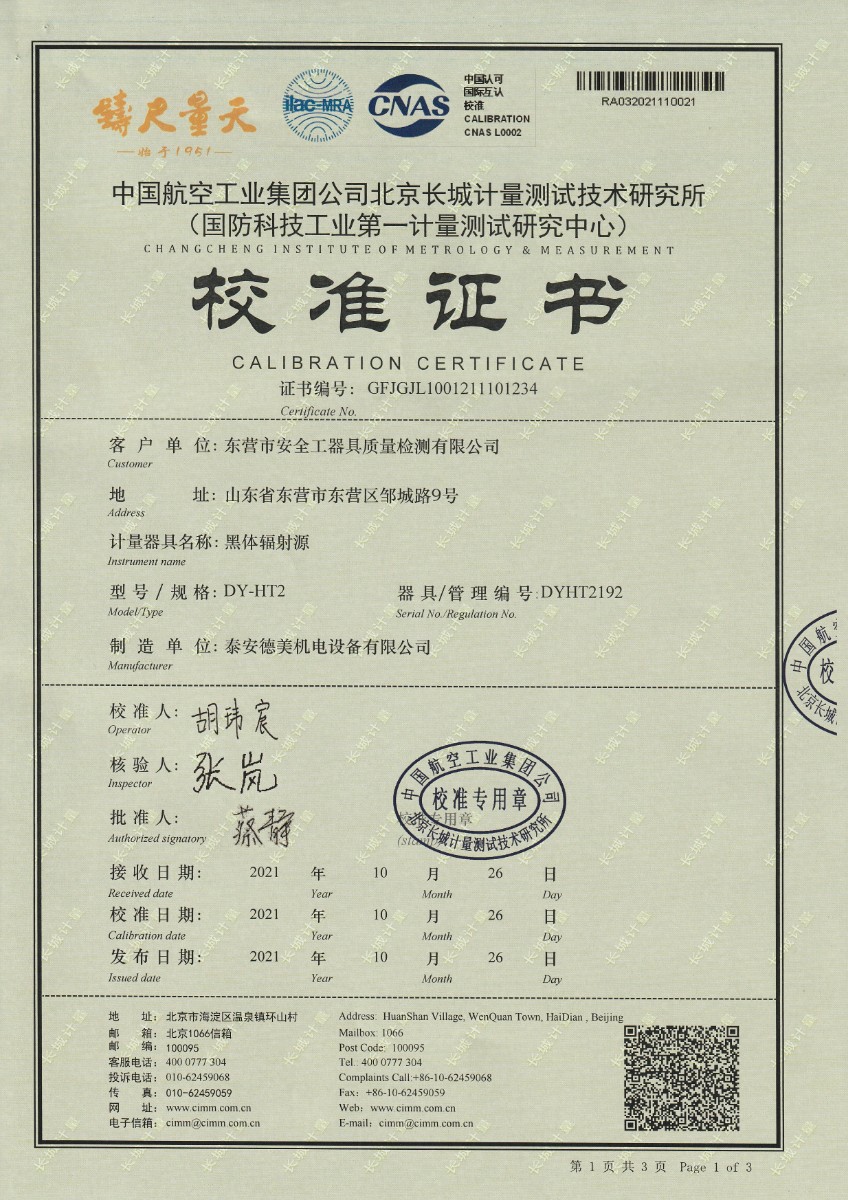 | 上一條:東營(yíng)市安全工器具質(zhì)量檢測(cè)有限公司-黑體輻射源(-15-80℃) | 下一條:冷鏡式露點(diǎn)儀校準(zhǔn)證書(shū) |