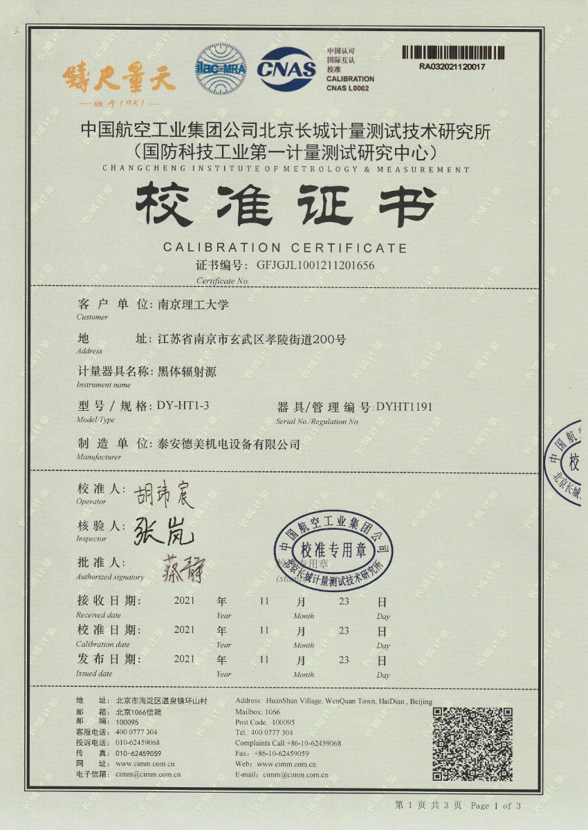 | 上一條:南京理工大學(xué)-黑體輻射源校準(zhǔn)證書(shū)10-60℃ | 下一條:冷鏡式露點(diǎn)儀校準(zhǔn)證書(shū) |