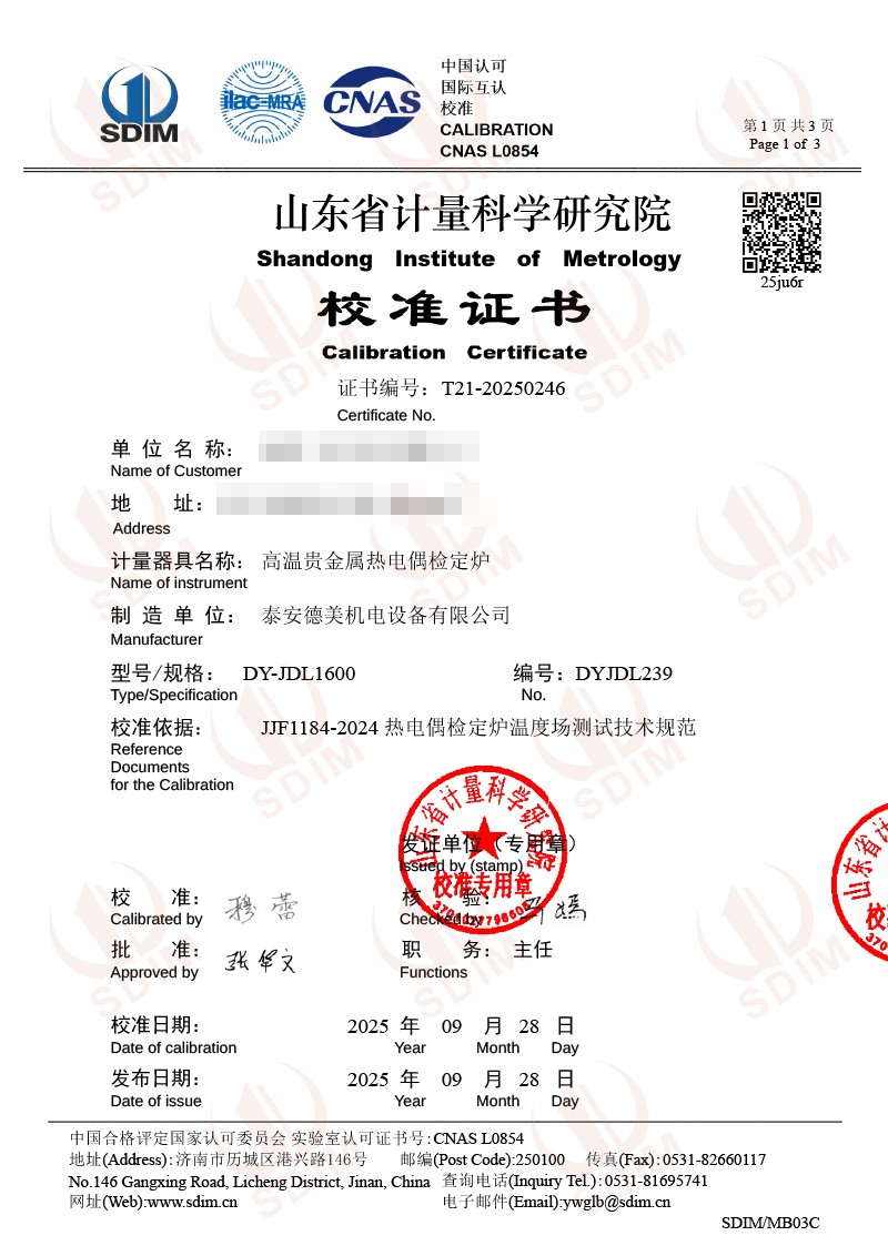 高溫貴金屬熱電偶檢定爐(800-1600℃)校準(zhǔn)證書 2025-10-14 本文被閱讀 832 次
