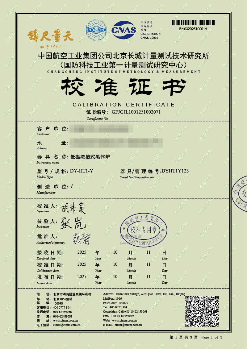低溫液槽式黑體爐(-40-100℃)校準證書 2025-10-30 本文被閱讀 343 次