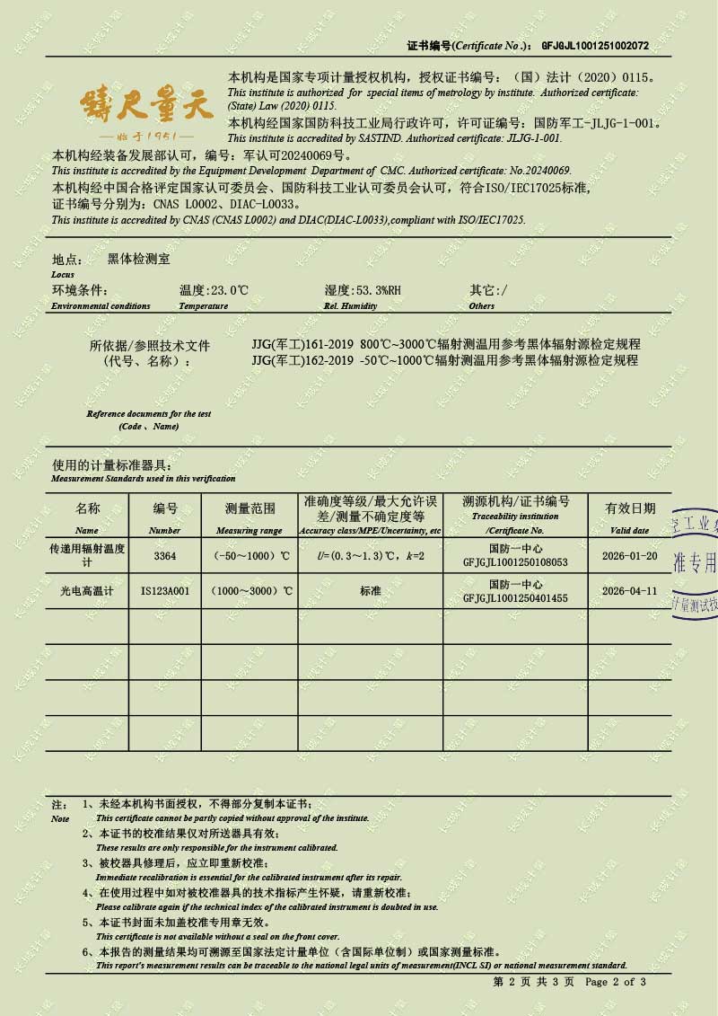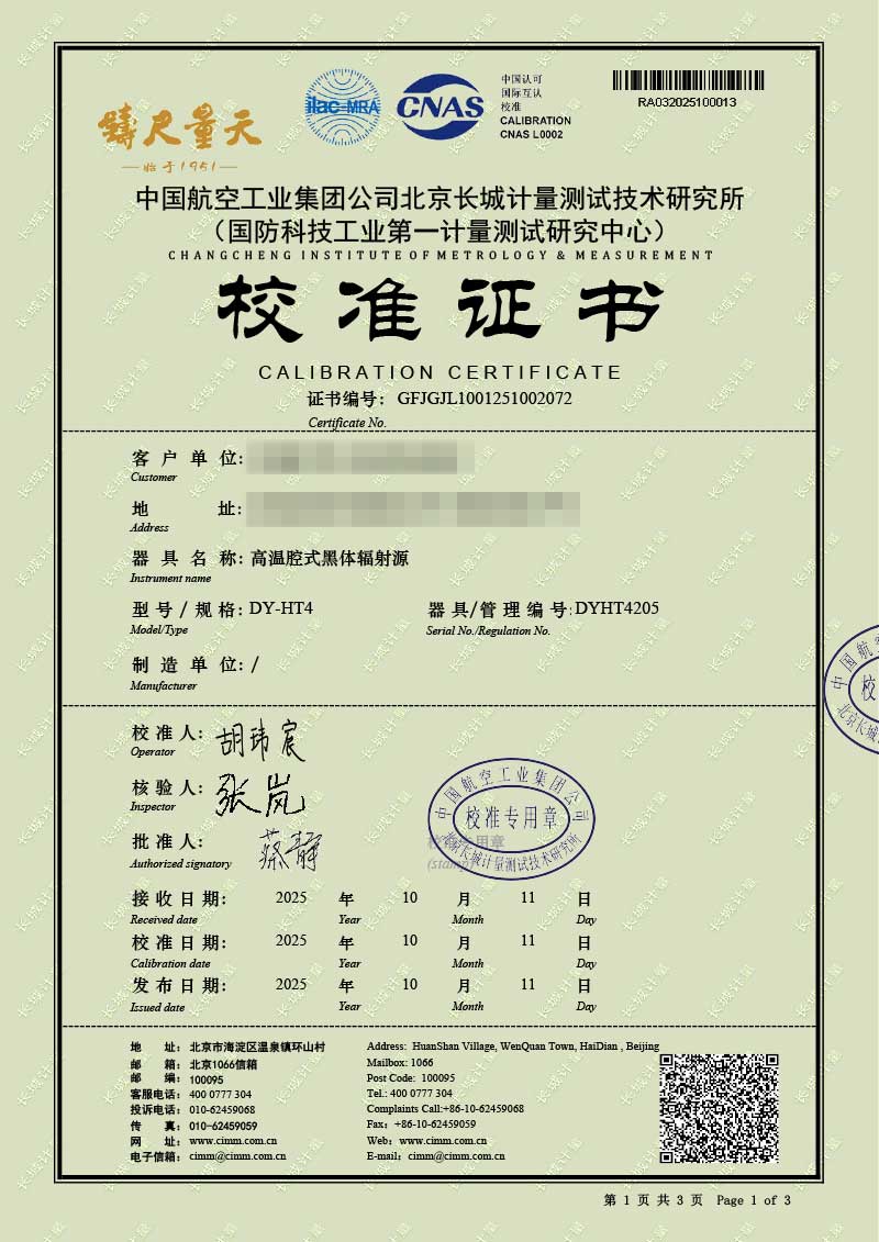 高溫腔式黑體輻射源(700-1600℃)校準(zhǔn)證書(shū) 2025-10-30 本文被閱讀 373 次
