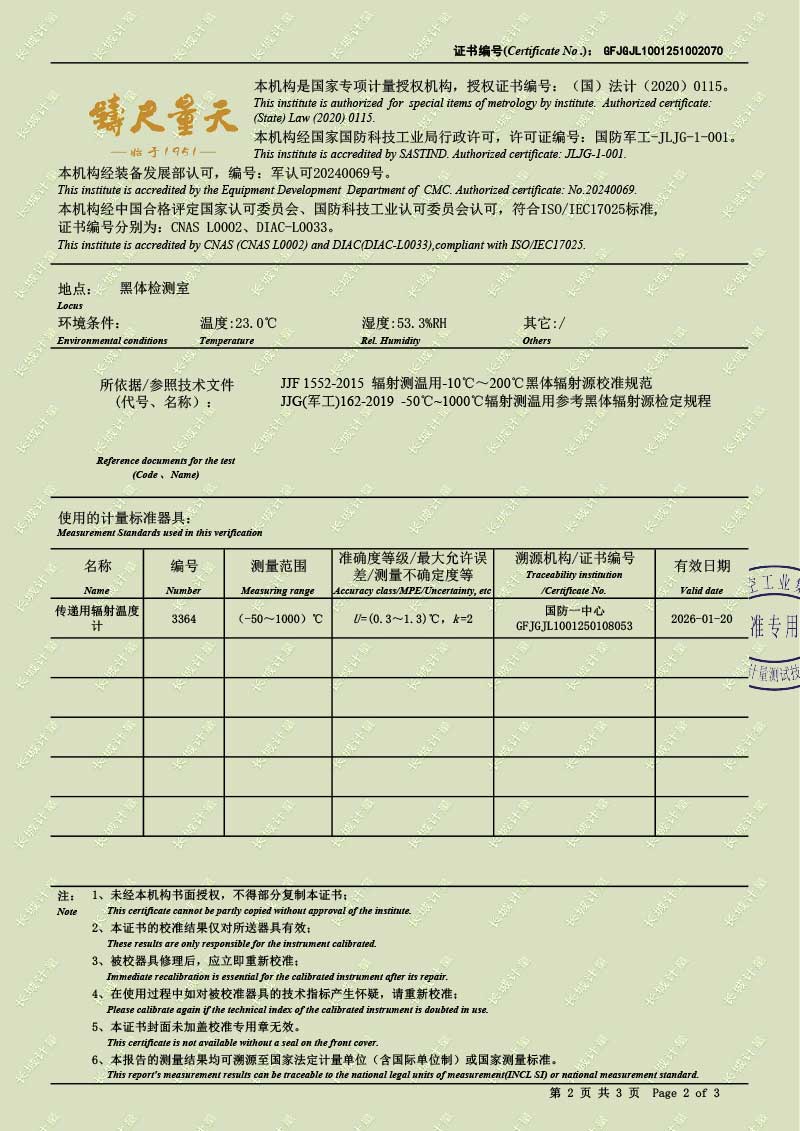 | 上一條:高溫腔式黑體輻射源(700-1600℃)校準(zhǔn)證書 | 下一條:零點(diǎn)恒溫器校準(zhǔn)證書 |