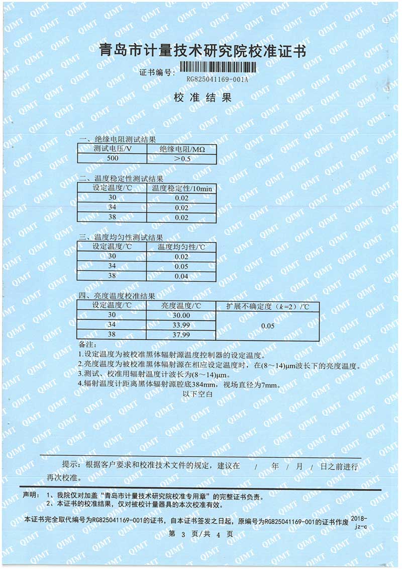 額溫計黑體空腔校準證書 2025-11-5 本文被閱讀 168 次