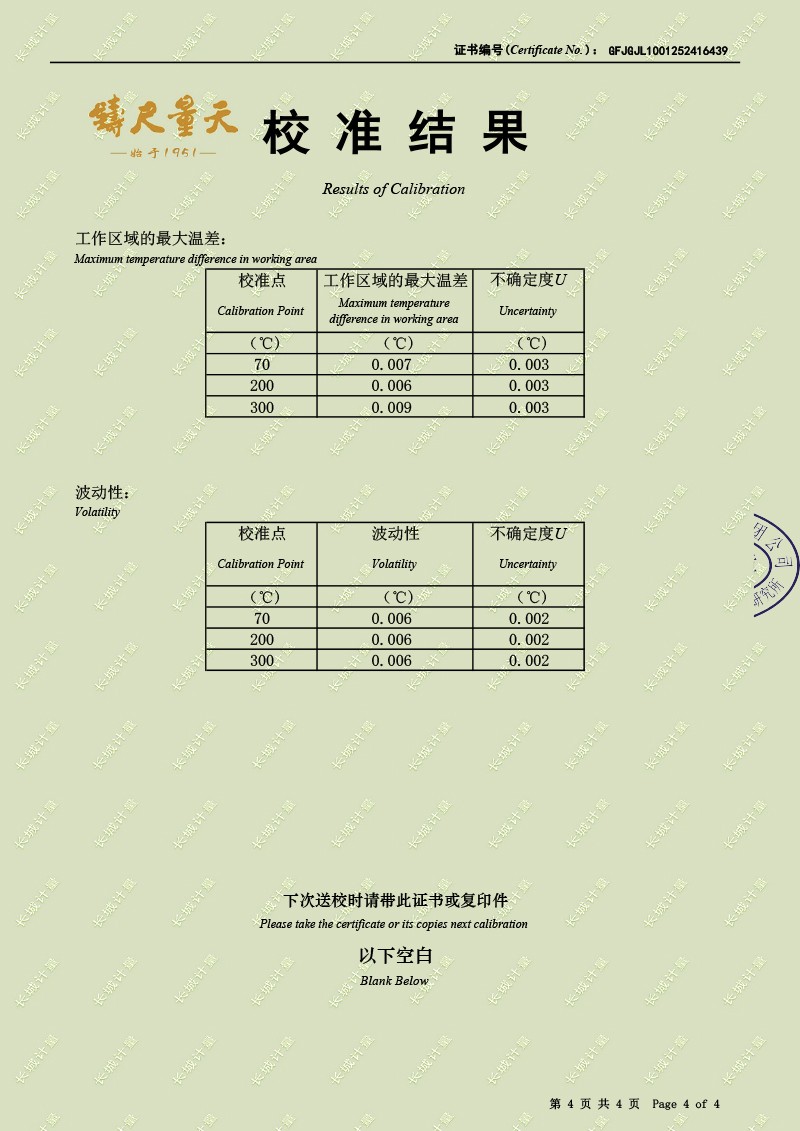 高精度恒溫油槽-校準證書 2025-12-19 本文被閱讀 1213 次