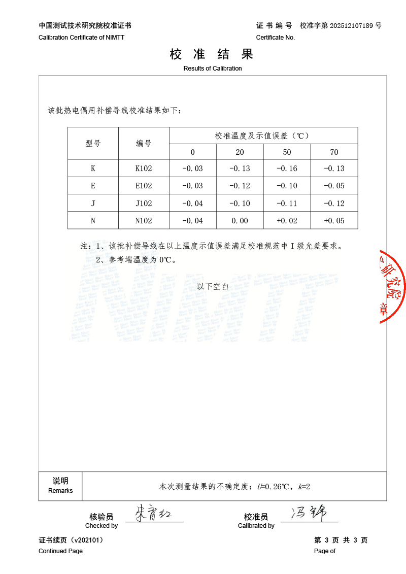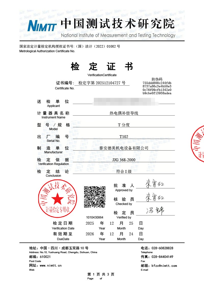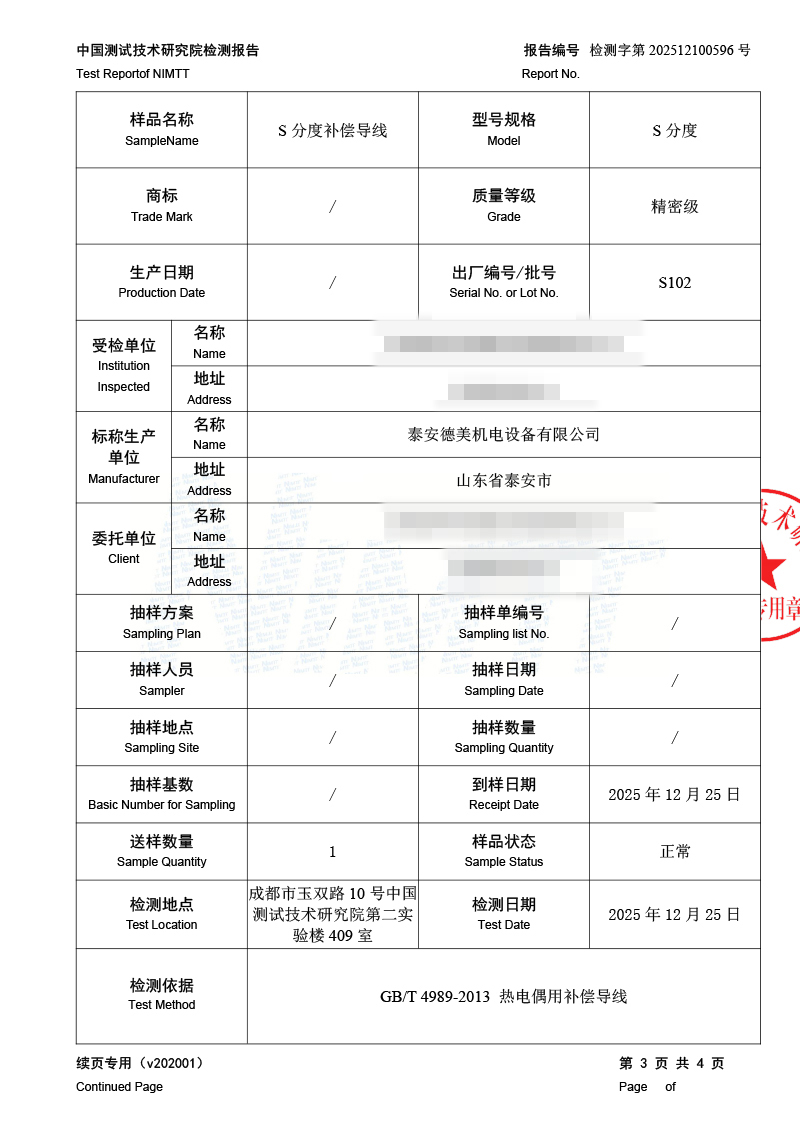 補(bǔ)償導(dǎo)線檢測(cè)、檢定、校準(zhǔn)報(bào)告 2026-1-4 本文被閱讀 1080 次