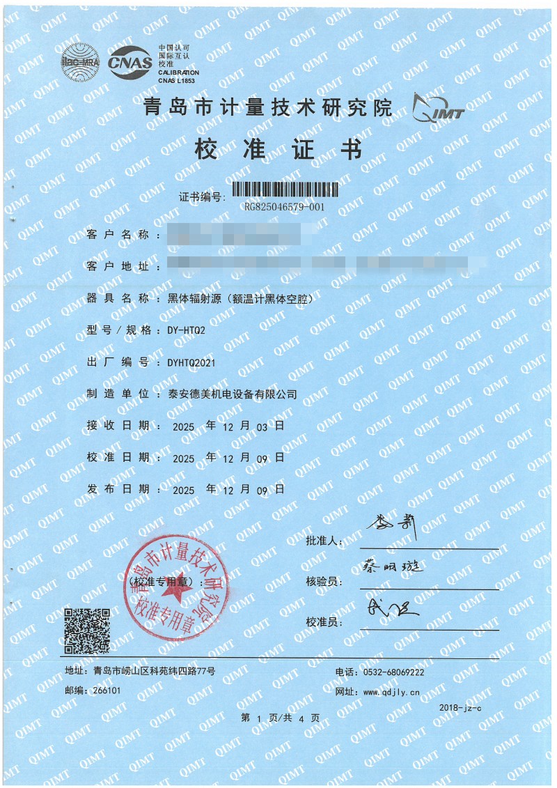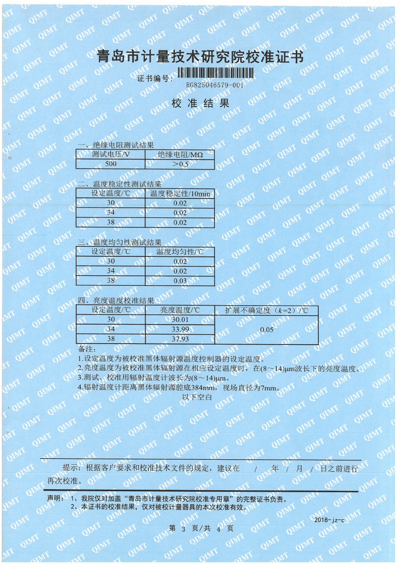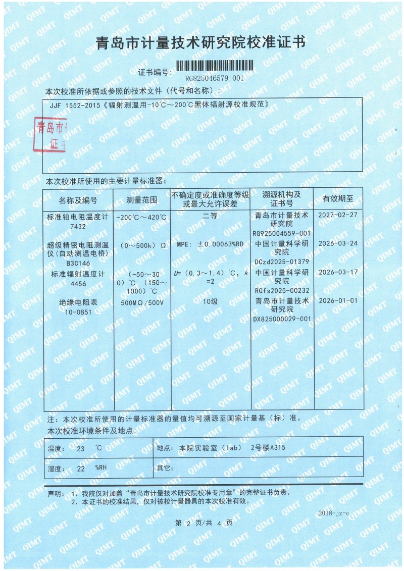 額溫計黑體空腔校準證書 2025-12-18 本文被閱讀 1343 次
