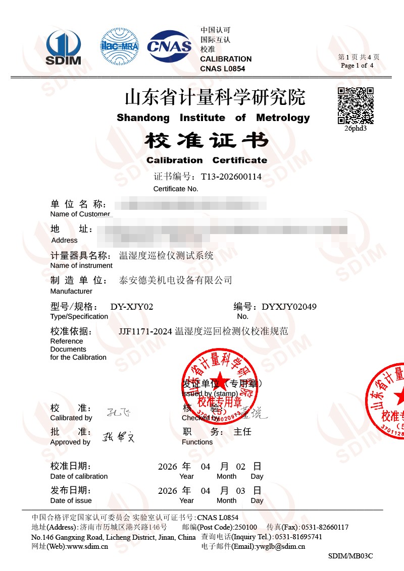 溫濕度巡檢儀測試系統(tǒng)-校準證書 2026-4-7 本文被閱讀 396 次