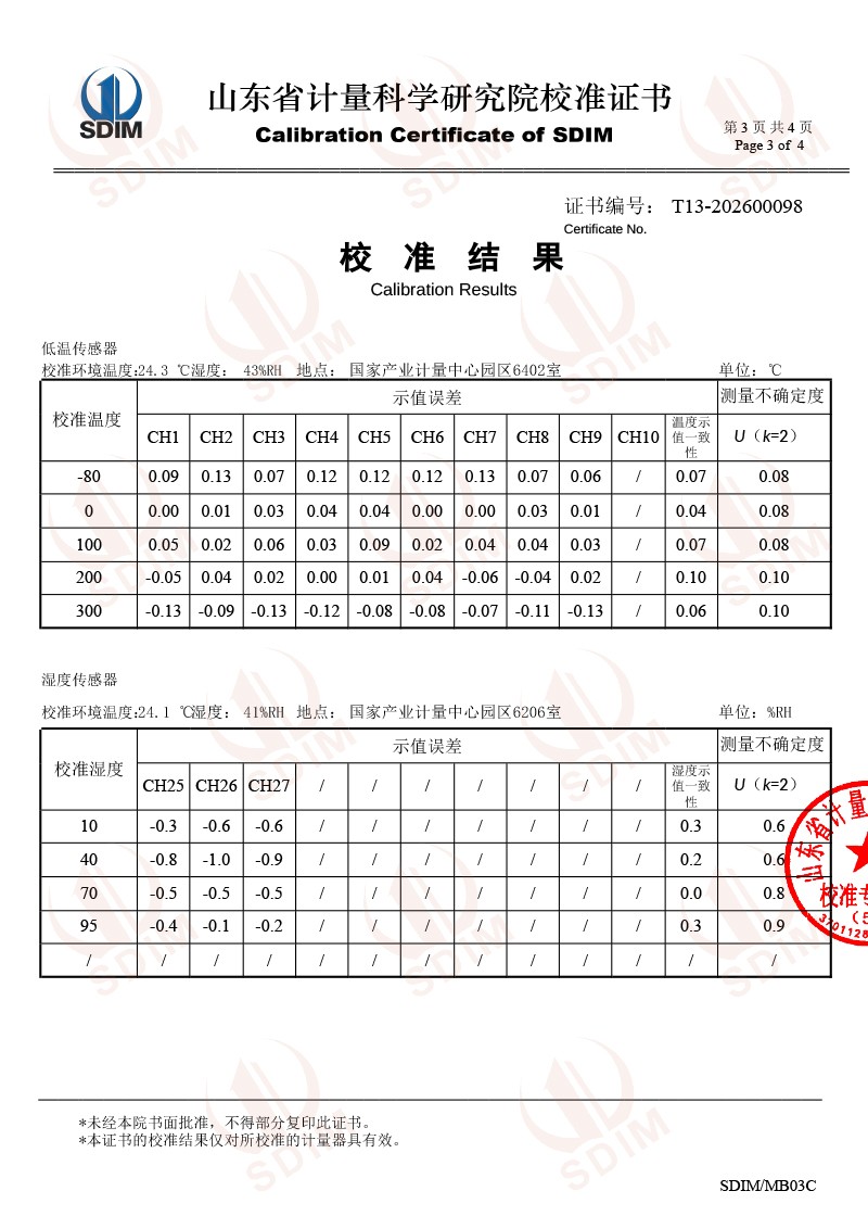 溫濕度巡檢儀測試系統(tǒng)-校準證書