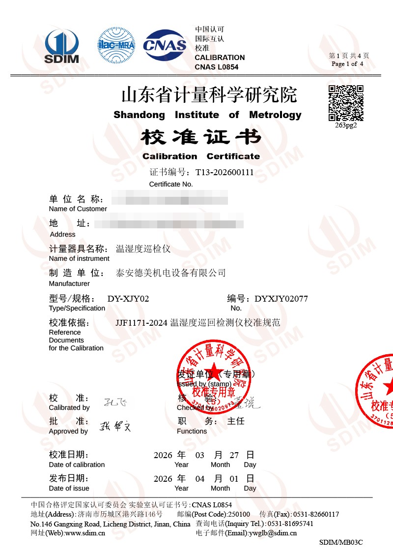溫濕度巡檢儀-校準(zhǔn)證書 2026-4-7 本文被閱讀 387 次
