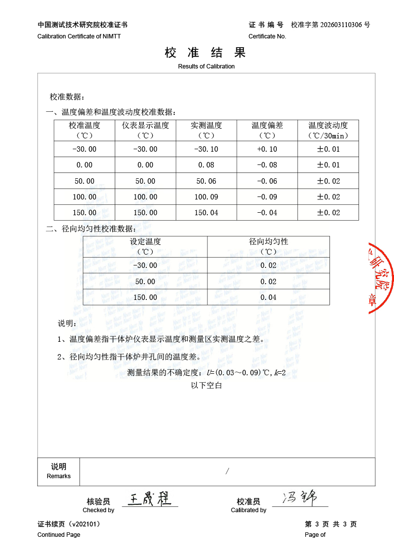 低溫干體爐-校準(zhǔn)證書 2026-4-7 本文被閱讀 648 次