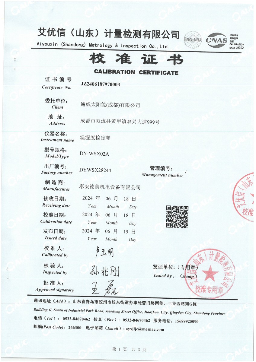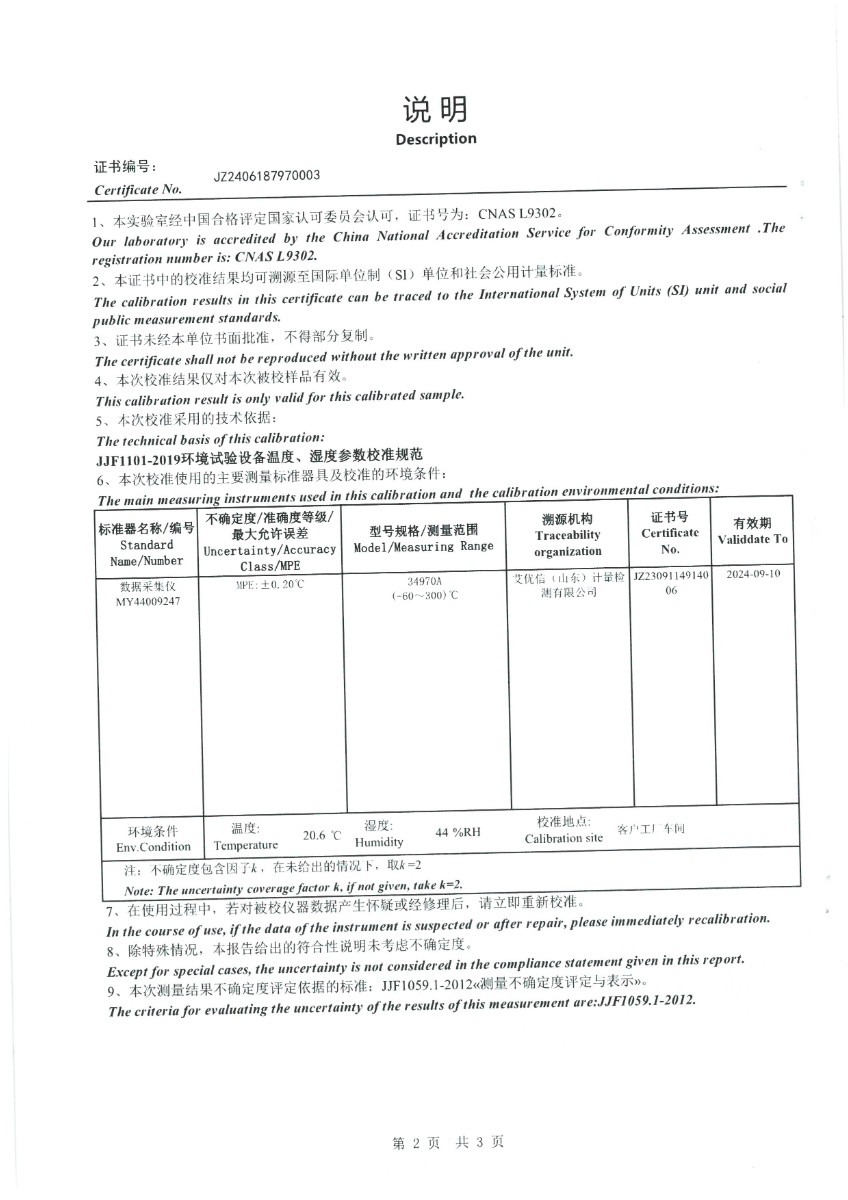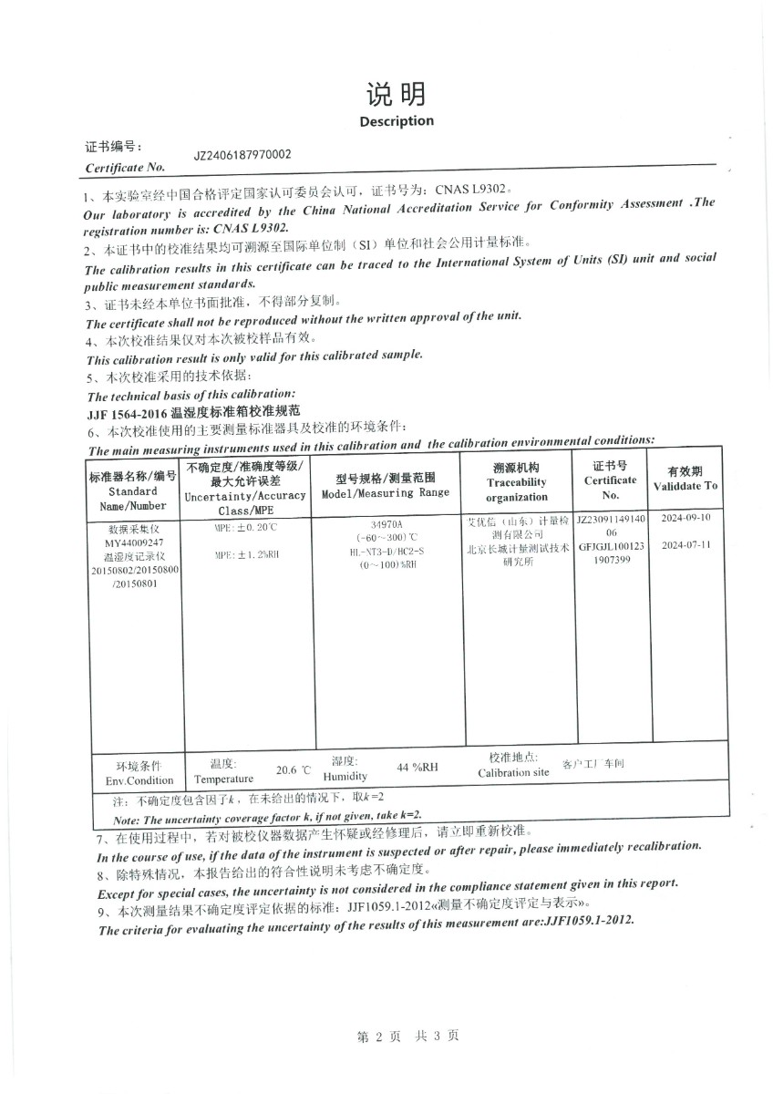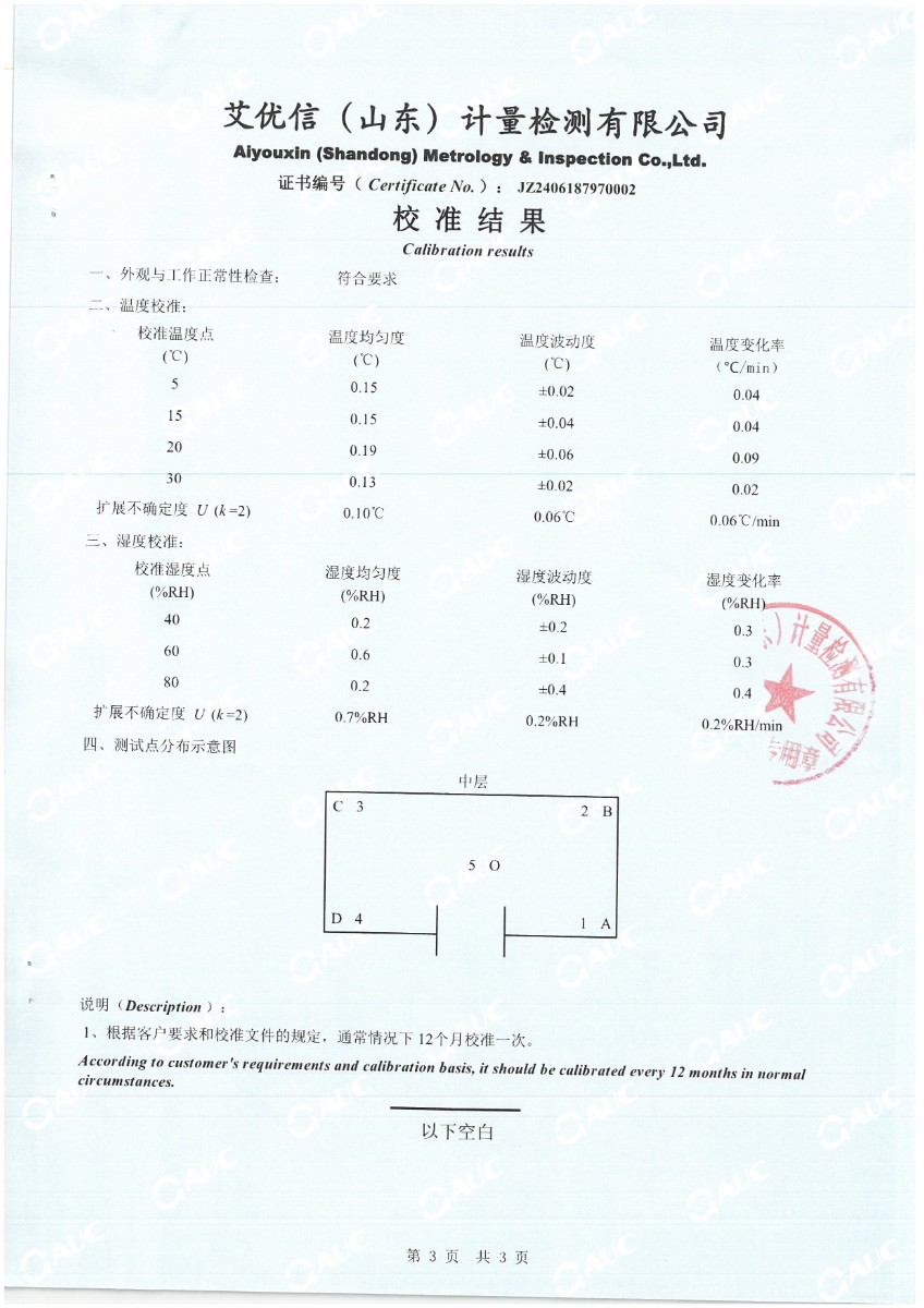 溫濕度檢定箱(-10~65℃)校準(zhǔn)證書(shū) 2024-6-25 本文被閱讀 6214 次