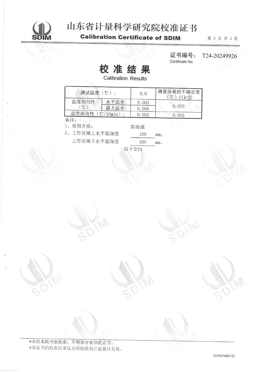 便攜式恒溫槽(0~95℃)校準(zhǔn)證書