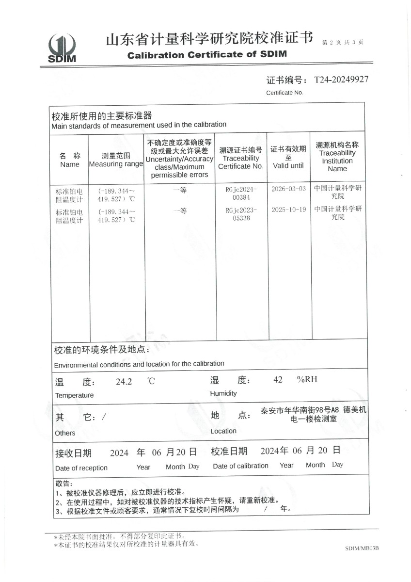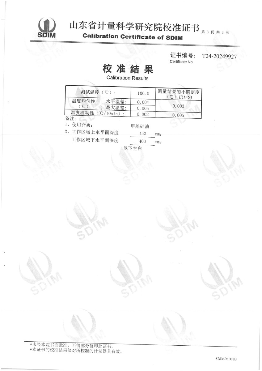 高精度恒溫油槽(90~300℃)校準(zhǔn)證書 2024-6-26 本文被閱讀 5844 次