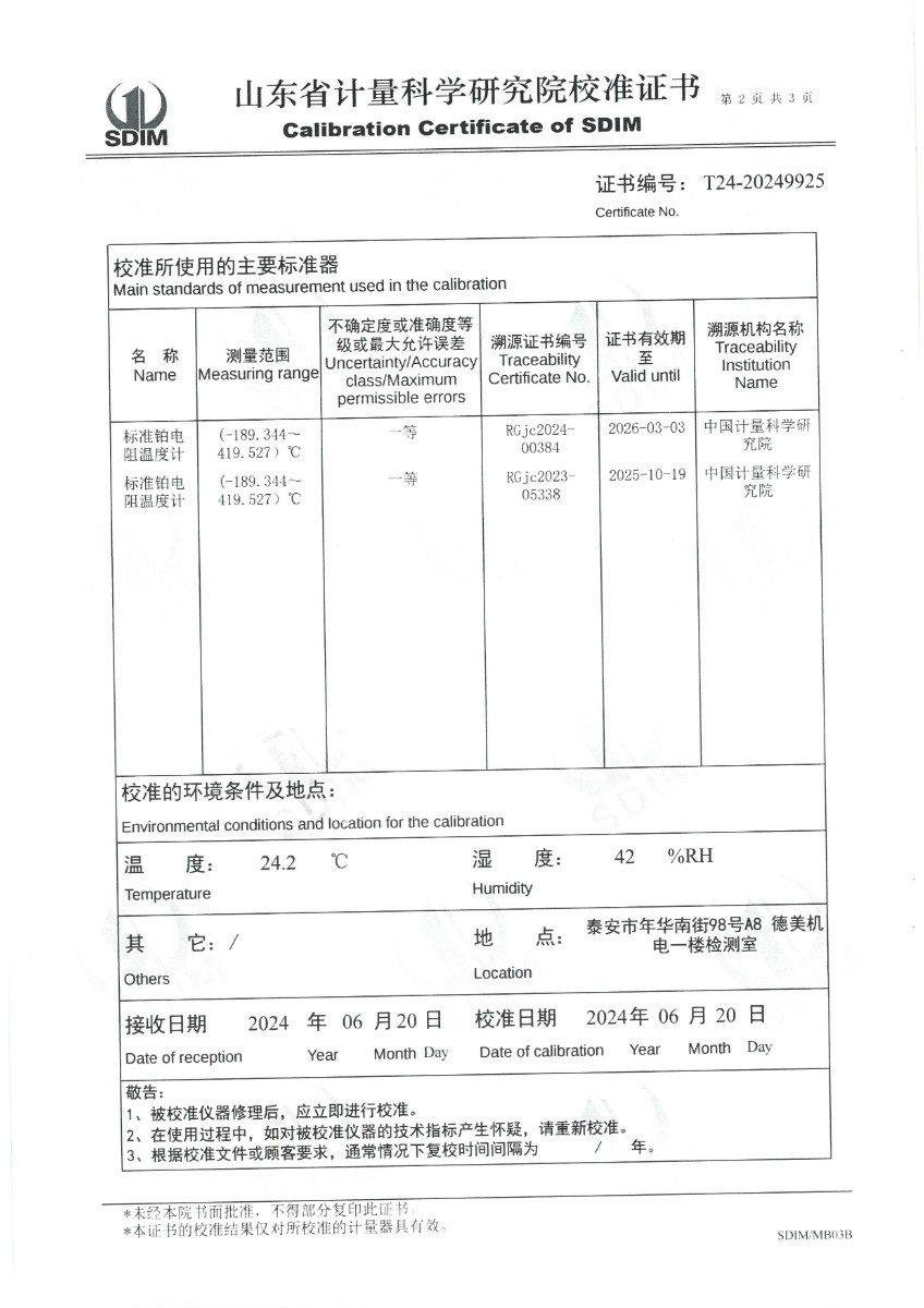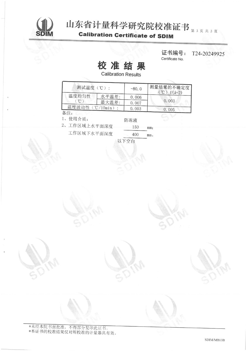 制冷恒溫槽(-80~95℃)校準(zhǔn)證書 2024-6-26 本文被閱讀 6112 次