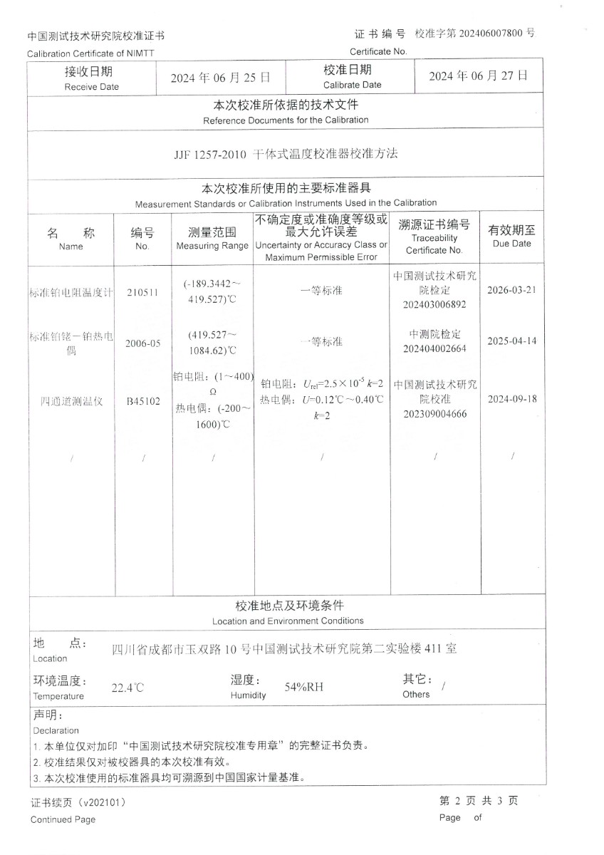 | 上一條:低溫干體爐(-30~150℃)校準(zhǔn)證書 | 下一條:冷鏡式露點(diǎn)儀校準(zhǔn)證書 |