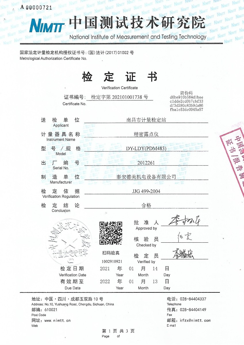 南昌市計量檢定站-精密露點儀 2021-1-22 本文被閱讀 16537 次