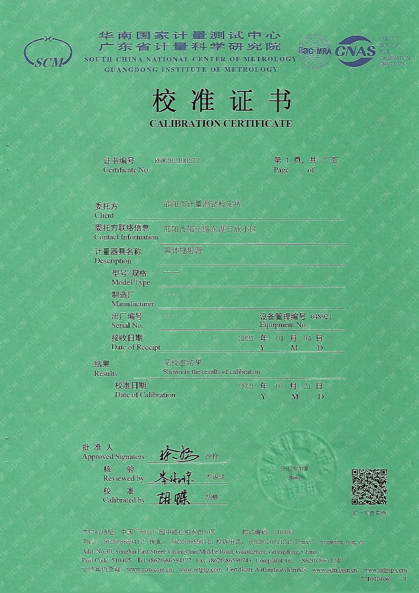 | 上一條:長沙彼樂機(jī)電設(shè)備有限公司-體黑體爐恒溫槽部分 | 下一條:冷鏡式露點(diǎn)儀校準(zhǔn)證書 |