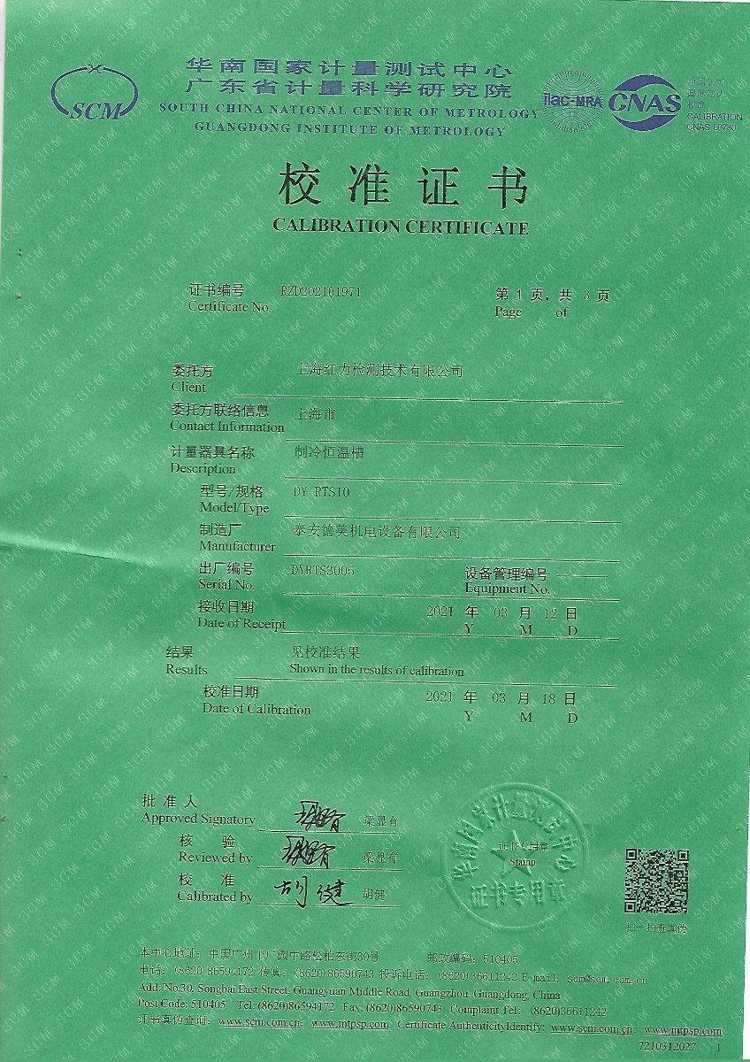 | 上一條:西安電子科技有限責(zé)任公司-智能高精度制冷恒溫槽 | 下一條:冷鏡式露點(diǎn)儀校準(zhǔn)證書 |