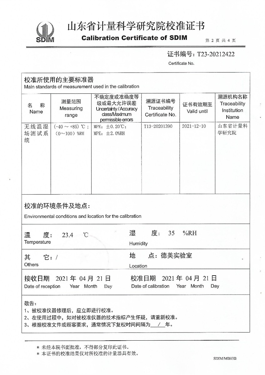 | 上一條:貴州中量計量測試檢測有限公司-冷鏡式露點儀校準(zhǔn)證書 | 下一條:冷鏡式露點儀校準(zhǔn)證書 |