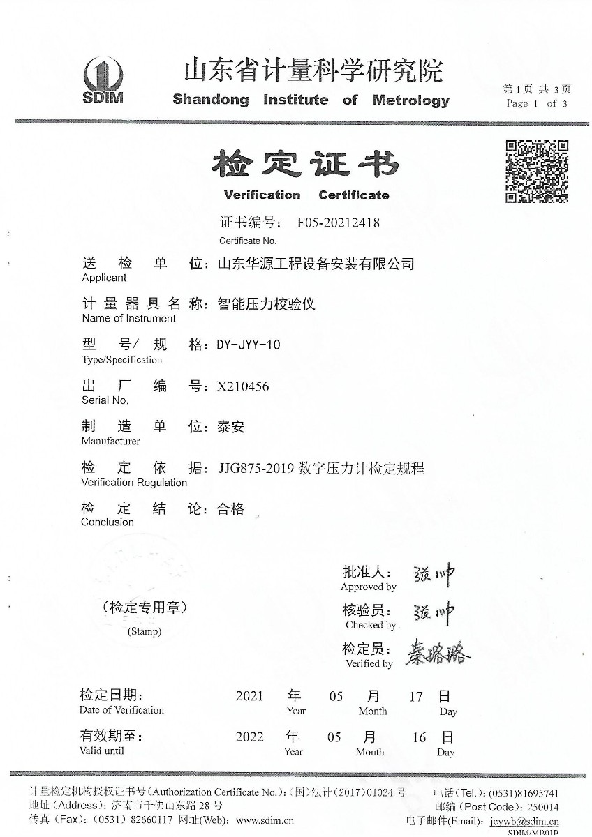 山東華源工程設備安裝有限公司-智能壓力校驗儀X210456 2021-5-27 本文被閱讀 13666 次