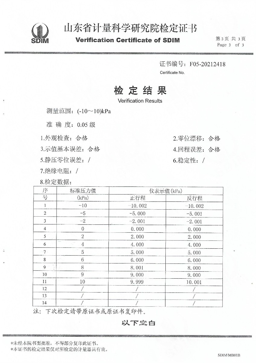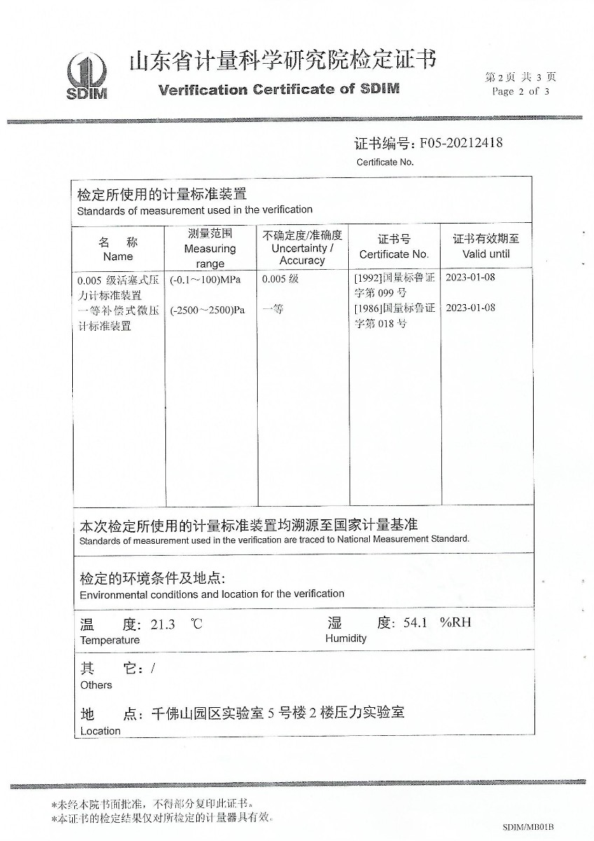 上一條:山東華源工程設備安裝有限公司-智能壓力校驗儀X210455下一條:冷鏡式露點儀校準證書