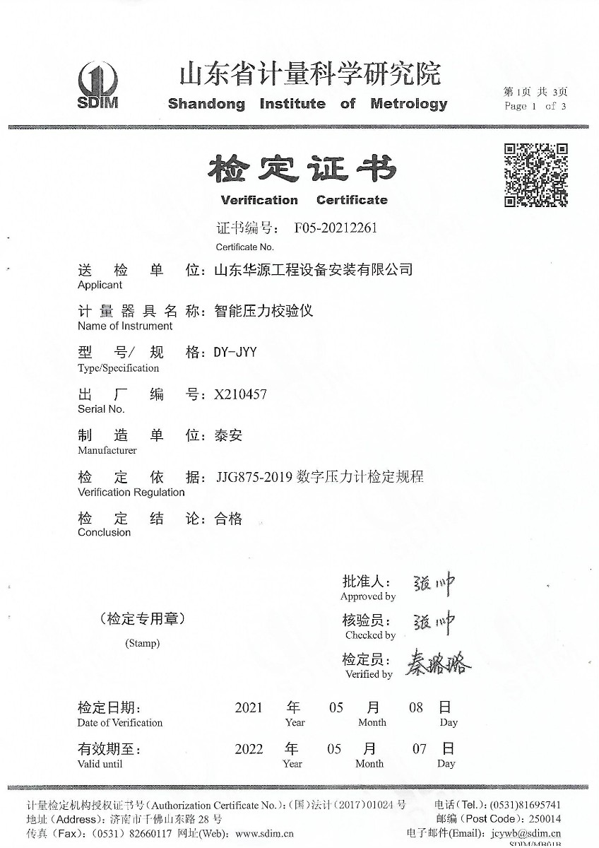 山東華源工程設(shè)備安裝有限公司-智能壓力校驗儀X210457 2021-5-27 本文被閱讀 15019 次