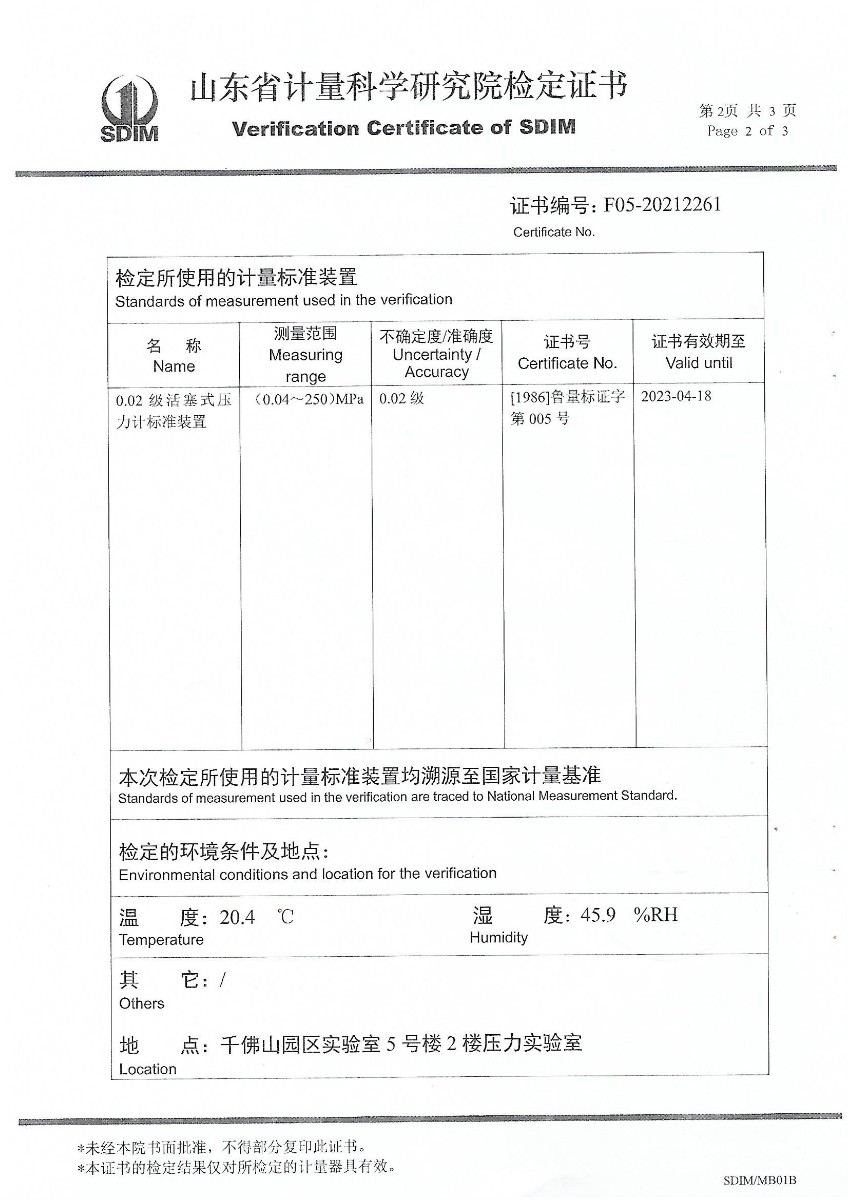 上一條:山東華源工程設(shè)備安裝有限公司-智能壓力校驗儀X210456下一條:冷鏡式露點儀校準(zhǔn)證書