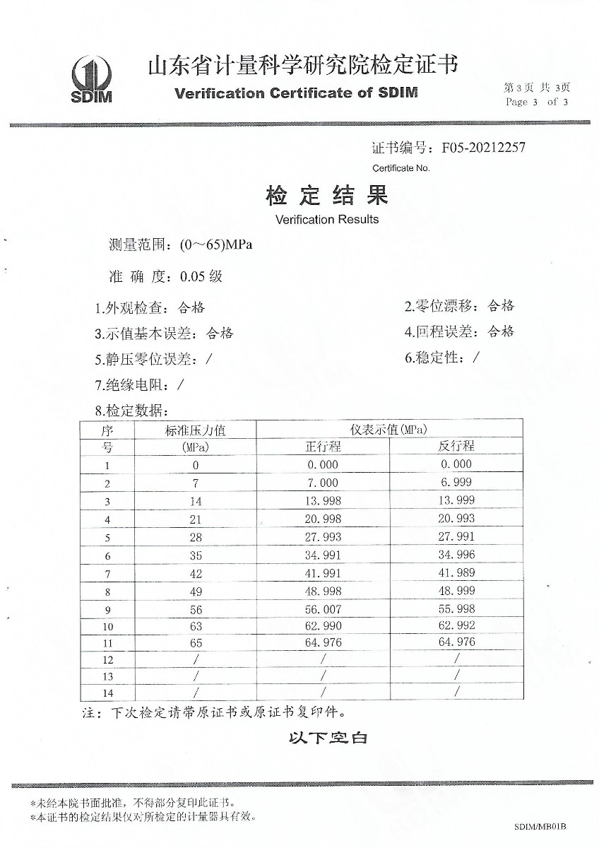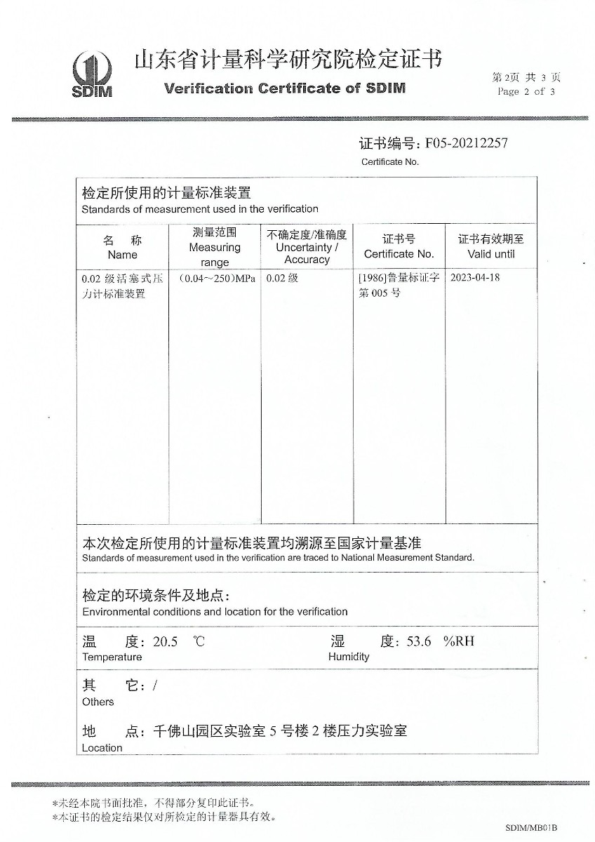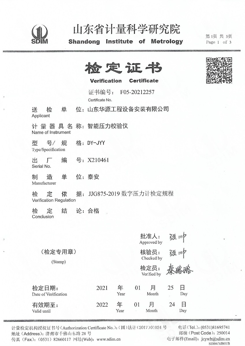 上一條:山東華源工程設備安裝有限公司-智能壓力校驗儀X210460下一條:冷鏡式露點儀校準證書