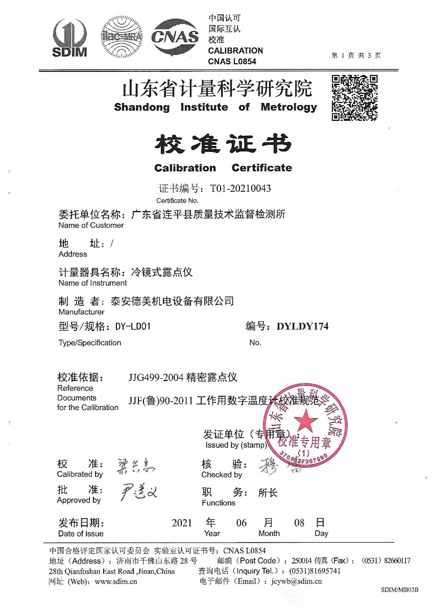 | 上一條:蘇州容啟傳感器科技有限公司-黑體爐 | 下一條:冷鏡式露點(diǎn)儀校準(zhǔn)證書 |