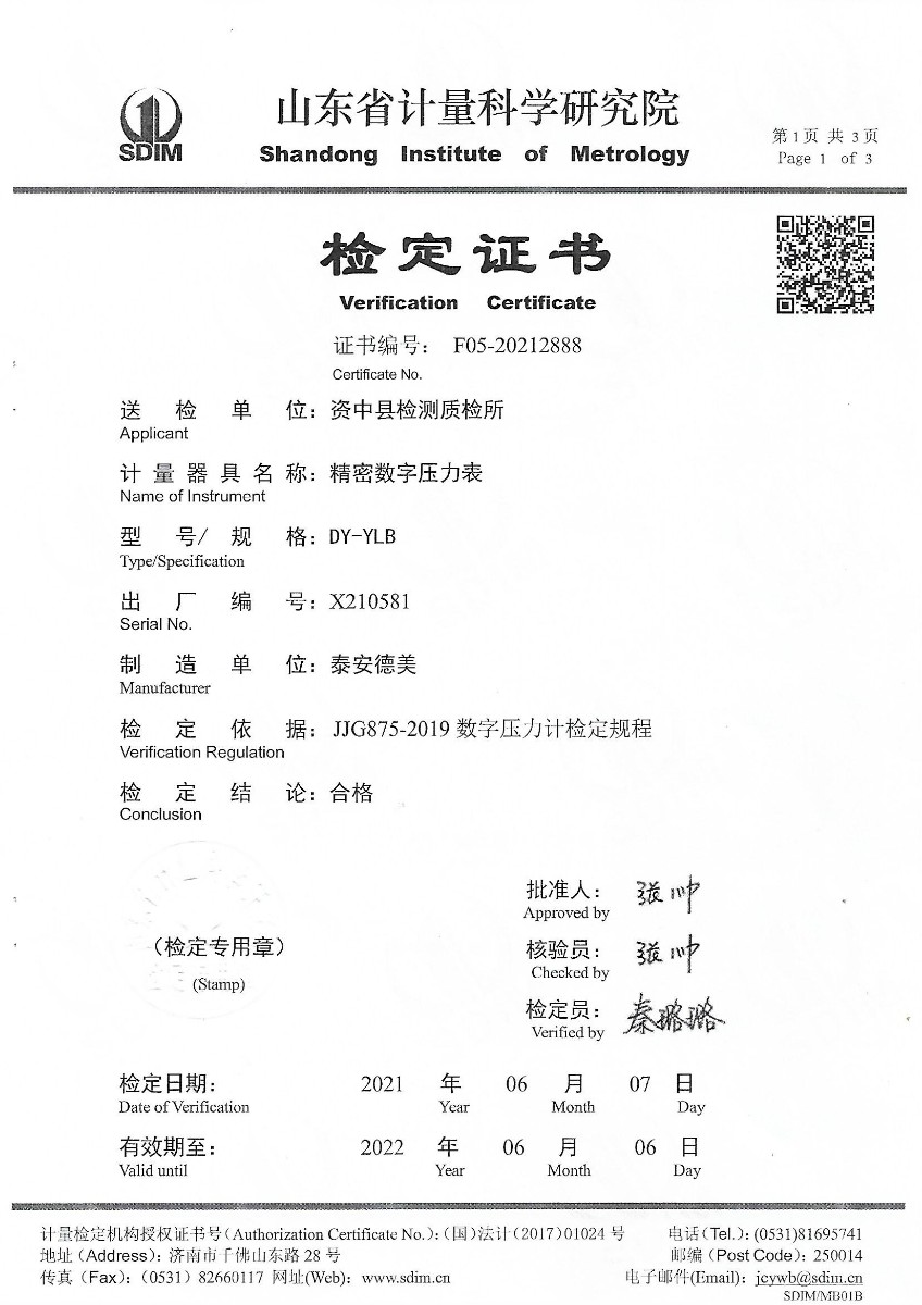 資中縣檢測質(zhì)檢所-精密數(shù)字壓力表 2021-6-10 本文被閱讀 15936 次