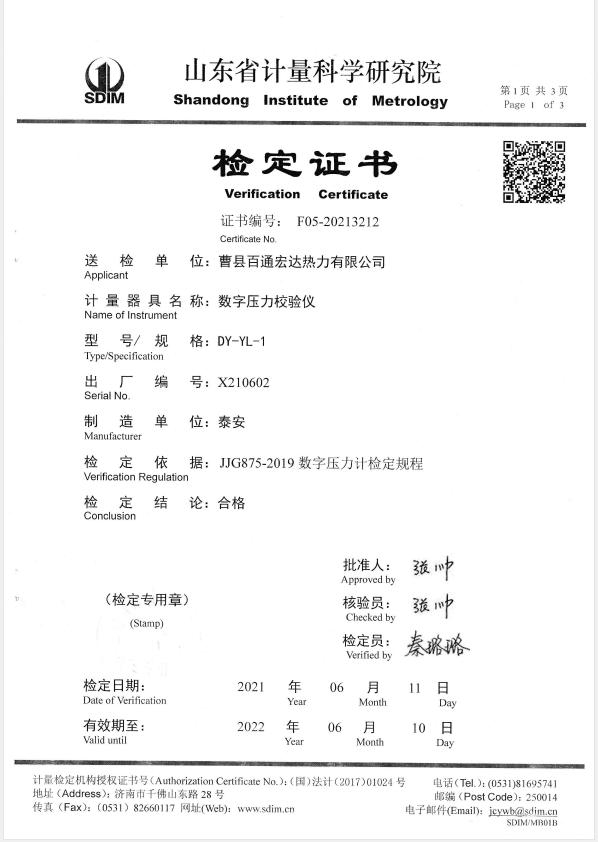 曹縣百通宏達熱力有限公司-數(shù)字壓力校驗儀 2021-6-23 本文被閱讀 15213 次