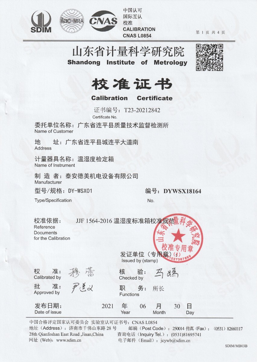 廣東省連平縣質(zhì)量技術(shù)監(jiān)督檢測所-溫濕度檢定箱 2021-7-3 本文被閱讀 17659 次