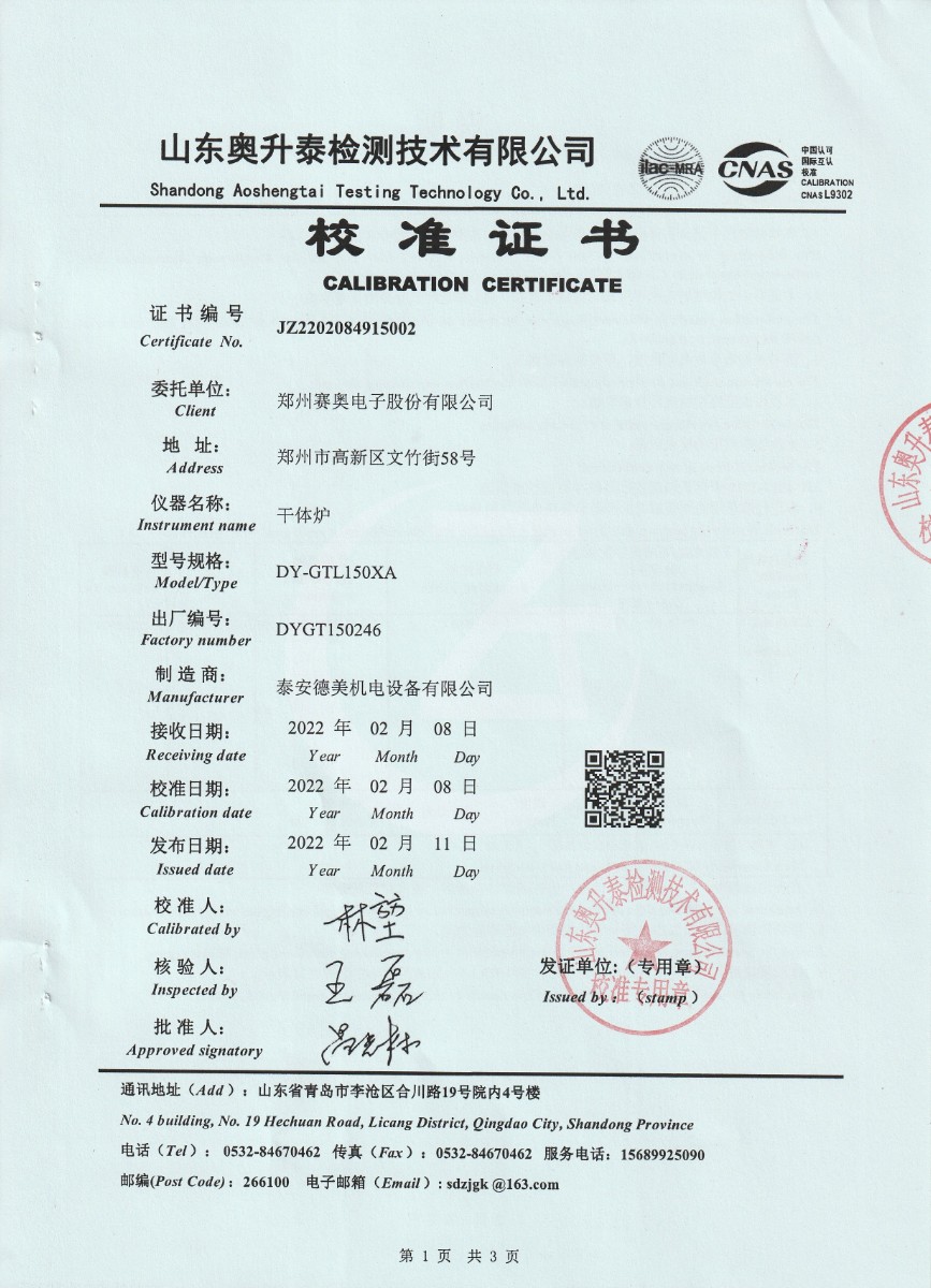 上一條:鄭州賽奧電子股份有限公司-干體爐DYGT150245下一條:冷鏡式露點儀校準證書