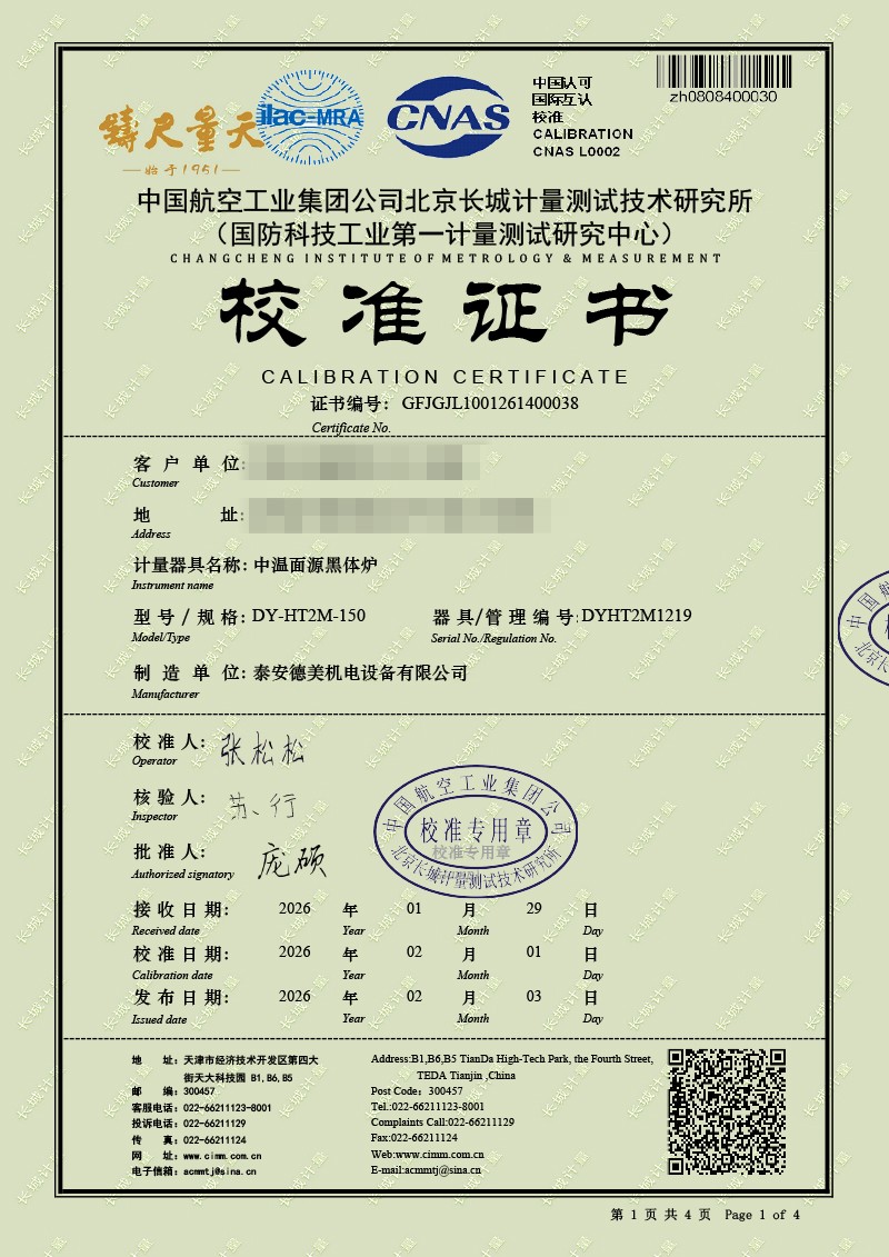 中溫面源黑體爐-校準(zhǔn)證書 2026-2-11 本文被閱讀 719 次