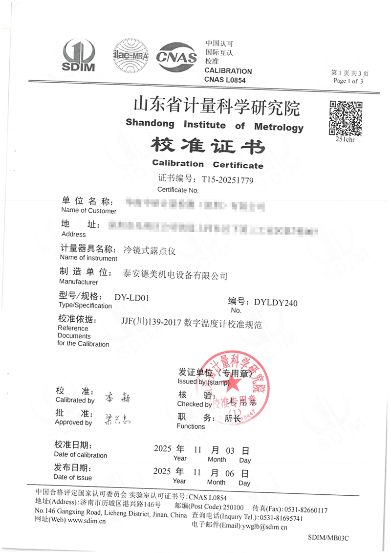 冷鏡式露點(diǎn)儀校準(zhǔn)證書 2025-11-7 本文被閱讀 130 次