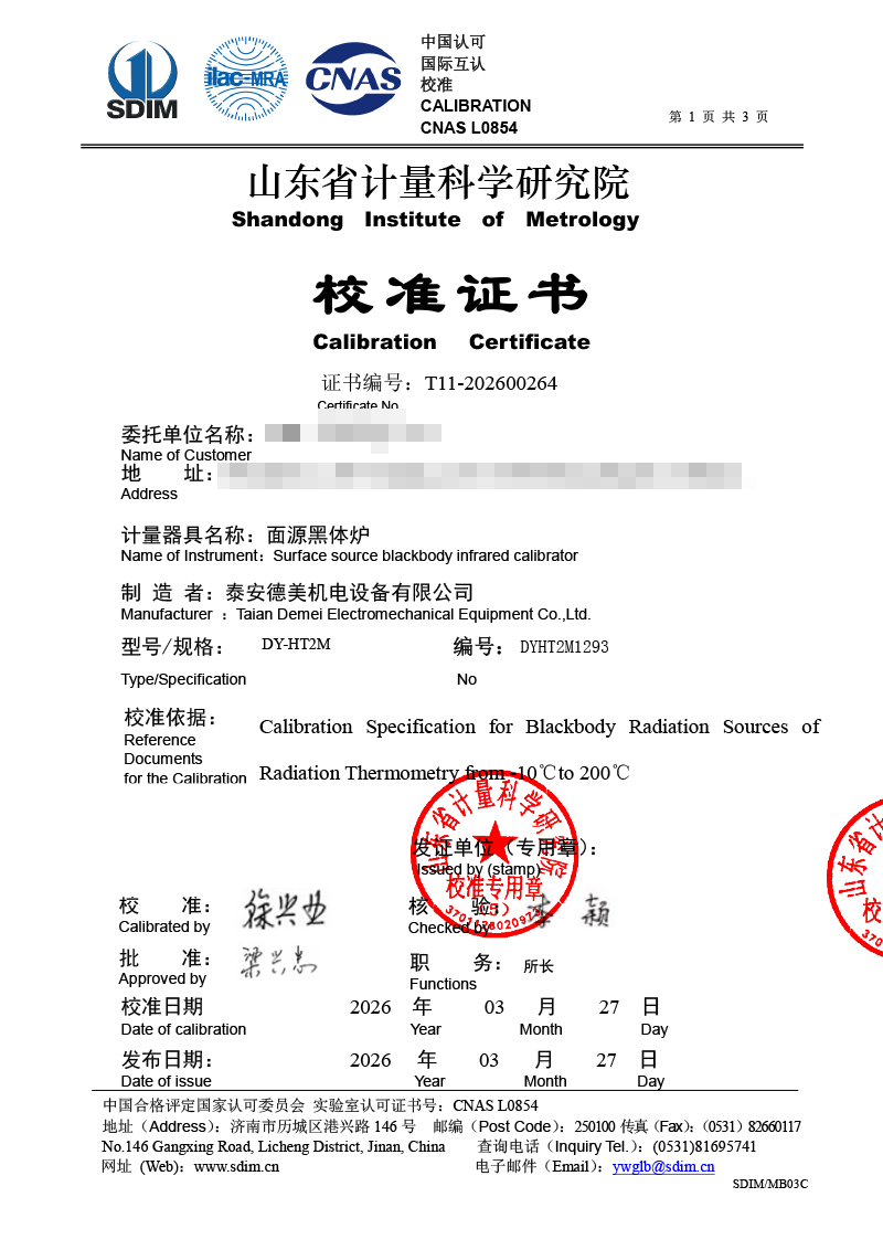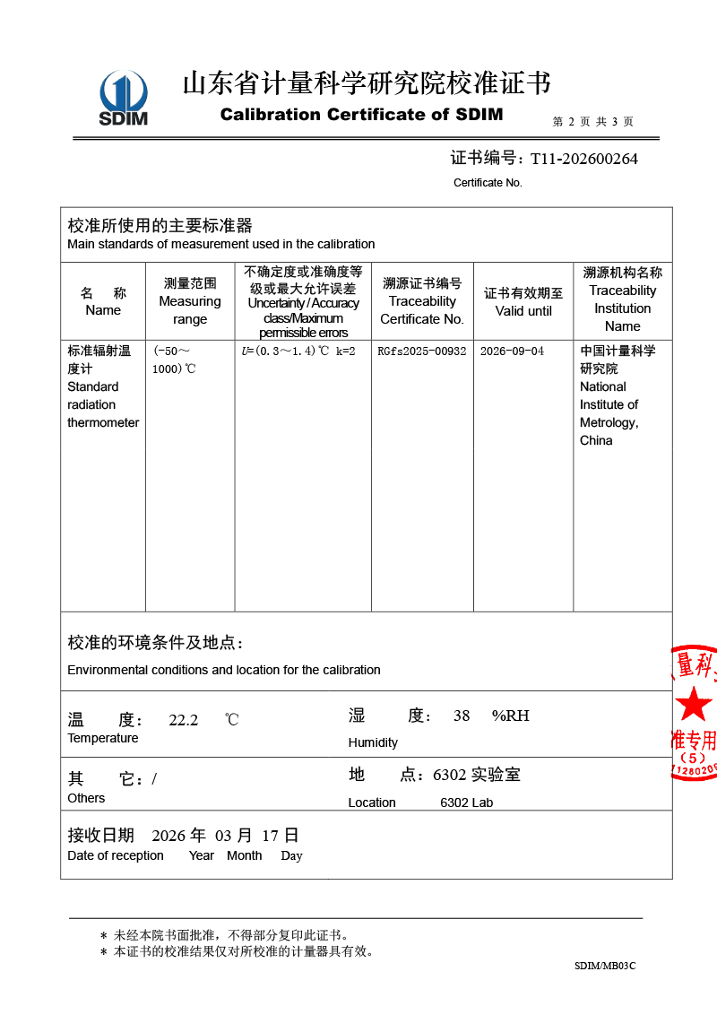 面源黑體爐-校準(zhǔn)證書 2026-4-7 本文被閱讀 729 次