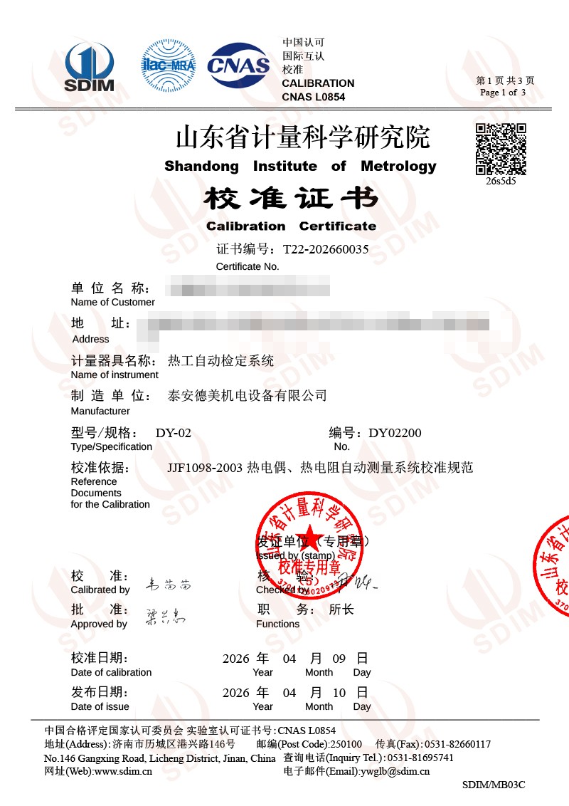 | 上一條:廉金屬熱電偶檢定爐-校準(zhǔn)證書 | 下一條:高精度數(shù)字溫度計(jì)-校準(zhǔn)證書 |